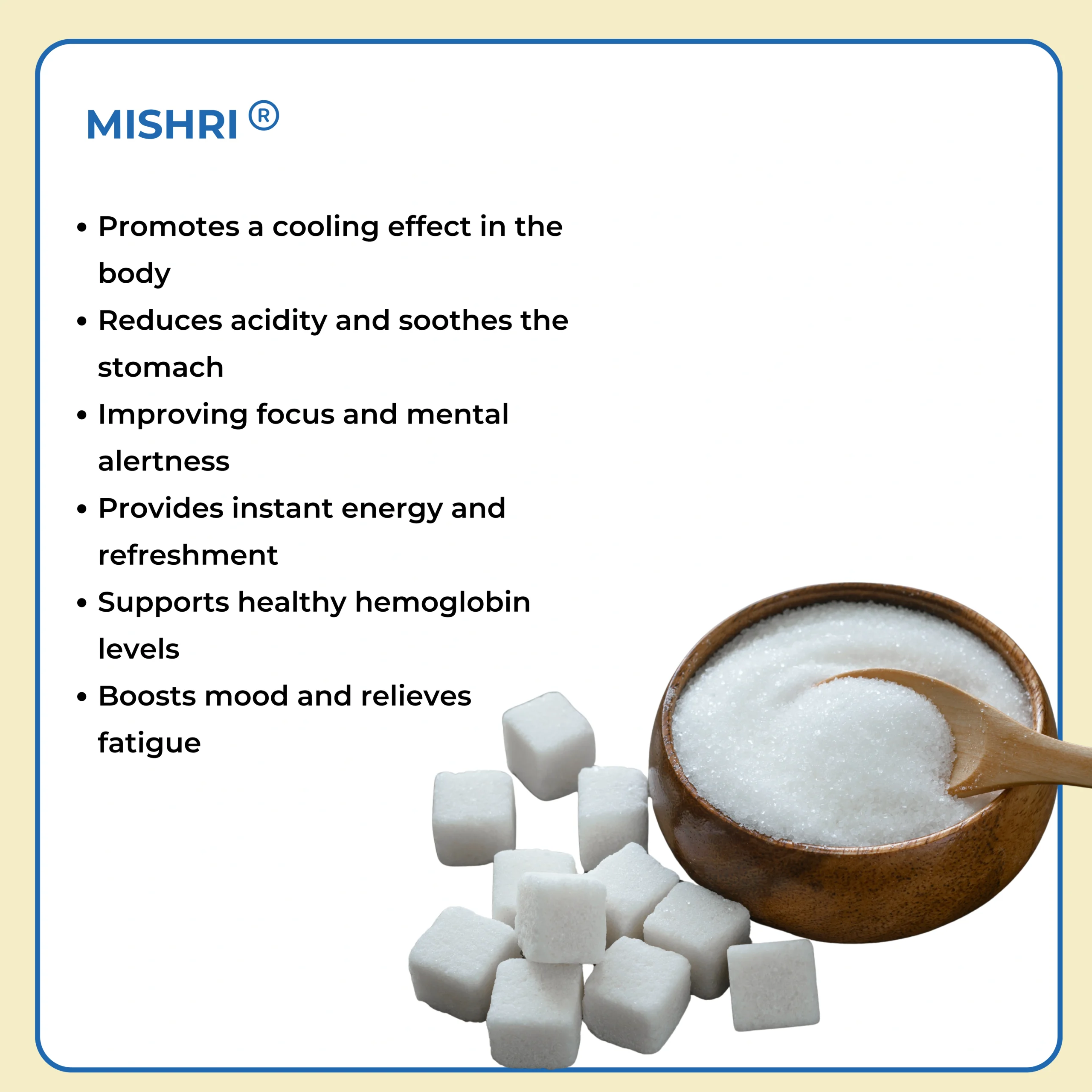 Mishri provides clean energy, soothes the digestive tract, improves appetite and supports comfortable calorie intake.