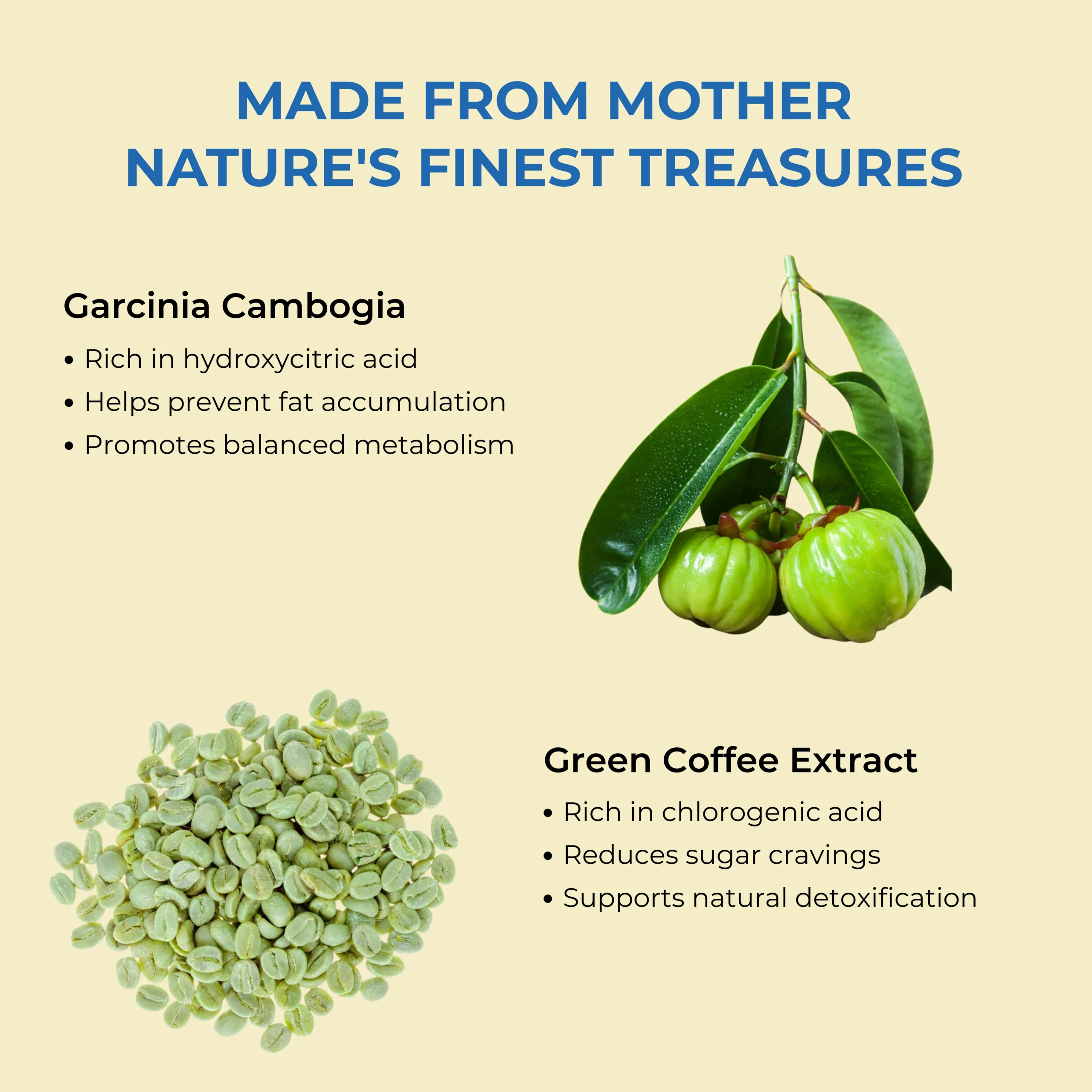 Green Coffee Bean Extract contains Chlorogenic Acids, natural plant compounds known for supporting fat metabolism and healthy weight management in men. These acids help slow down the absorption of carbohydrates in the digestive tract, preventing sudden blood and sugar spikes that often lead to belly-fat storage, especially in men with sedentary routines.